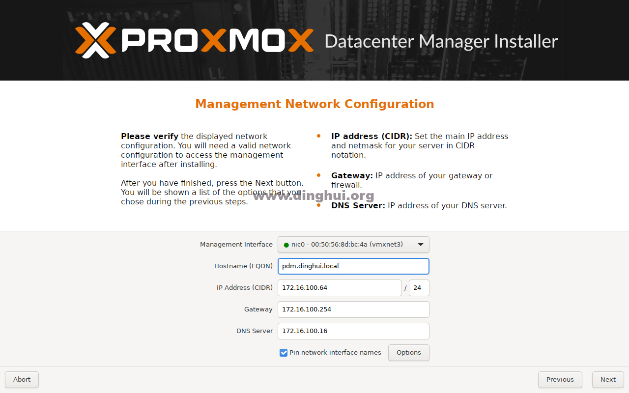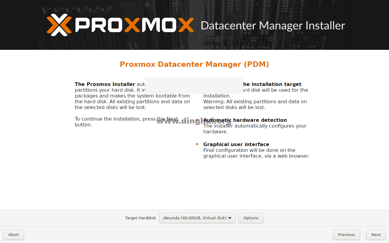 为了方便,创建一个虚拟机安装,安装手册里面系统要求建议测试环境(1 Core,1 G内存,10G硬盘),生产环境(2 Core,4 G内存,40G硬盘)以上。整个 PDM 导入和安装过程和 PVE 安装没啥太大区别。