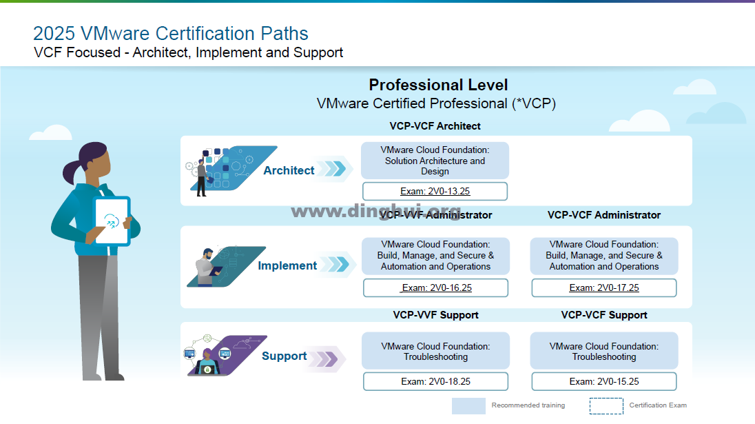 VCP分三个方向:Architect,Implement,Support。VCAP暂时没有考试。